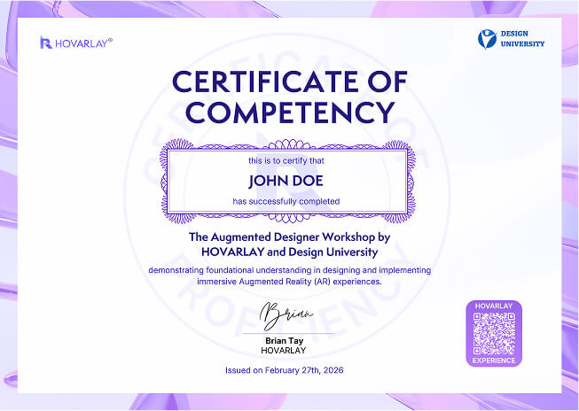 - The credential title: HOVARLAY Certificate of Competency in Augmented Reality Creation